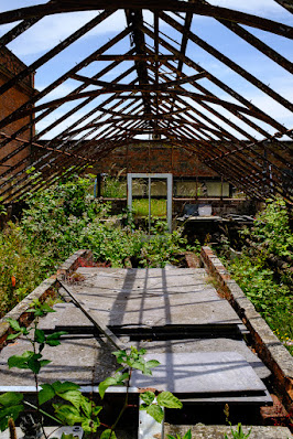The walled garden at Ickworth is much larger that the one at Wimpole. But much of it isn't in use, turned over to lawn rather than food and flowers. There are several large, disused glasshouses, that are slowly being reclaimed by nature. Lots of peeling paint, stagnant water, rust and brambles. The sort of derelict scene that appeals to many photographers. They certainly did to me.
